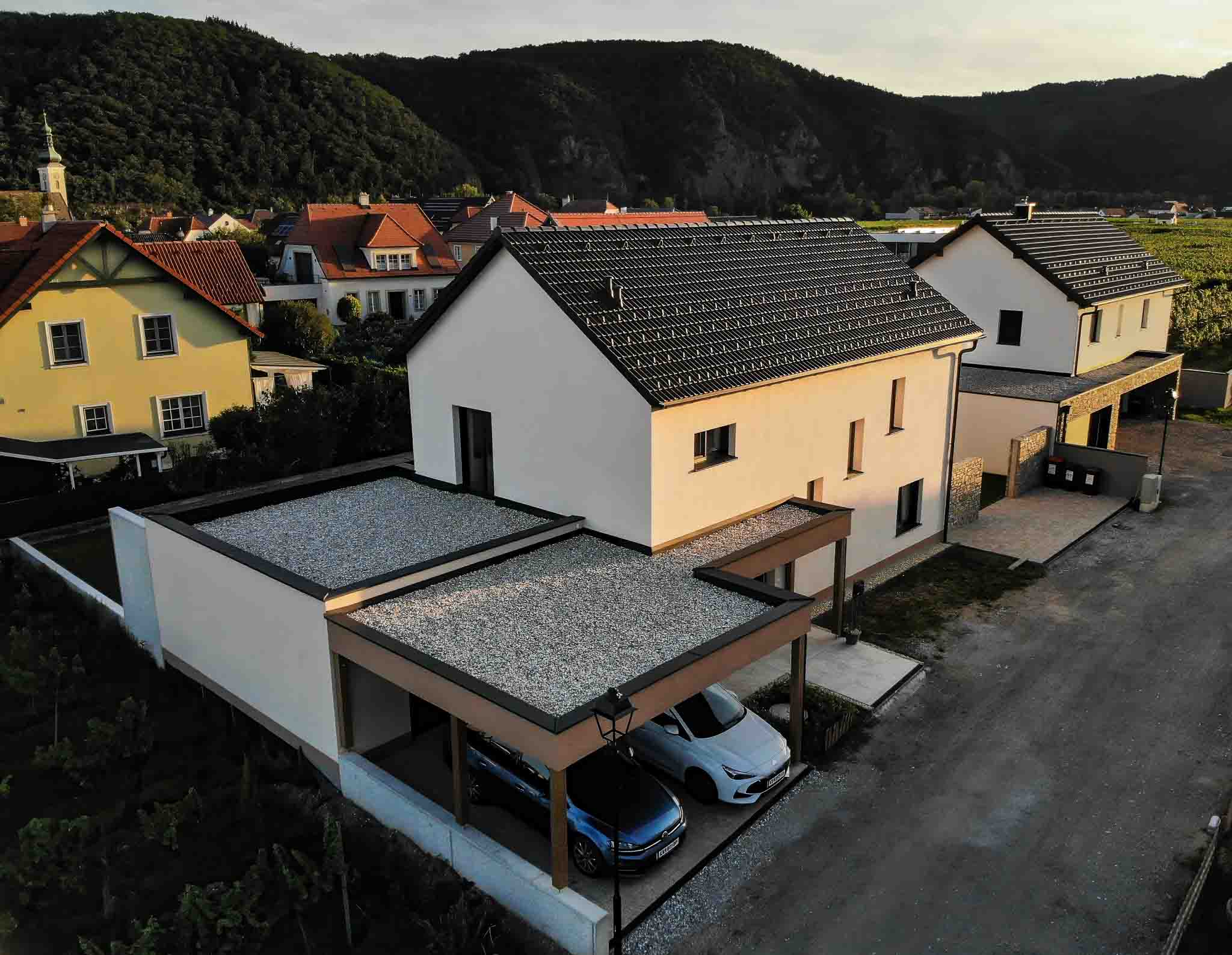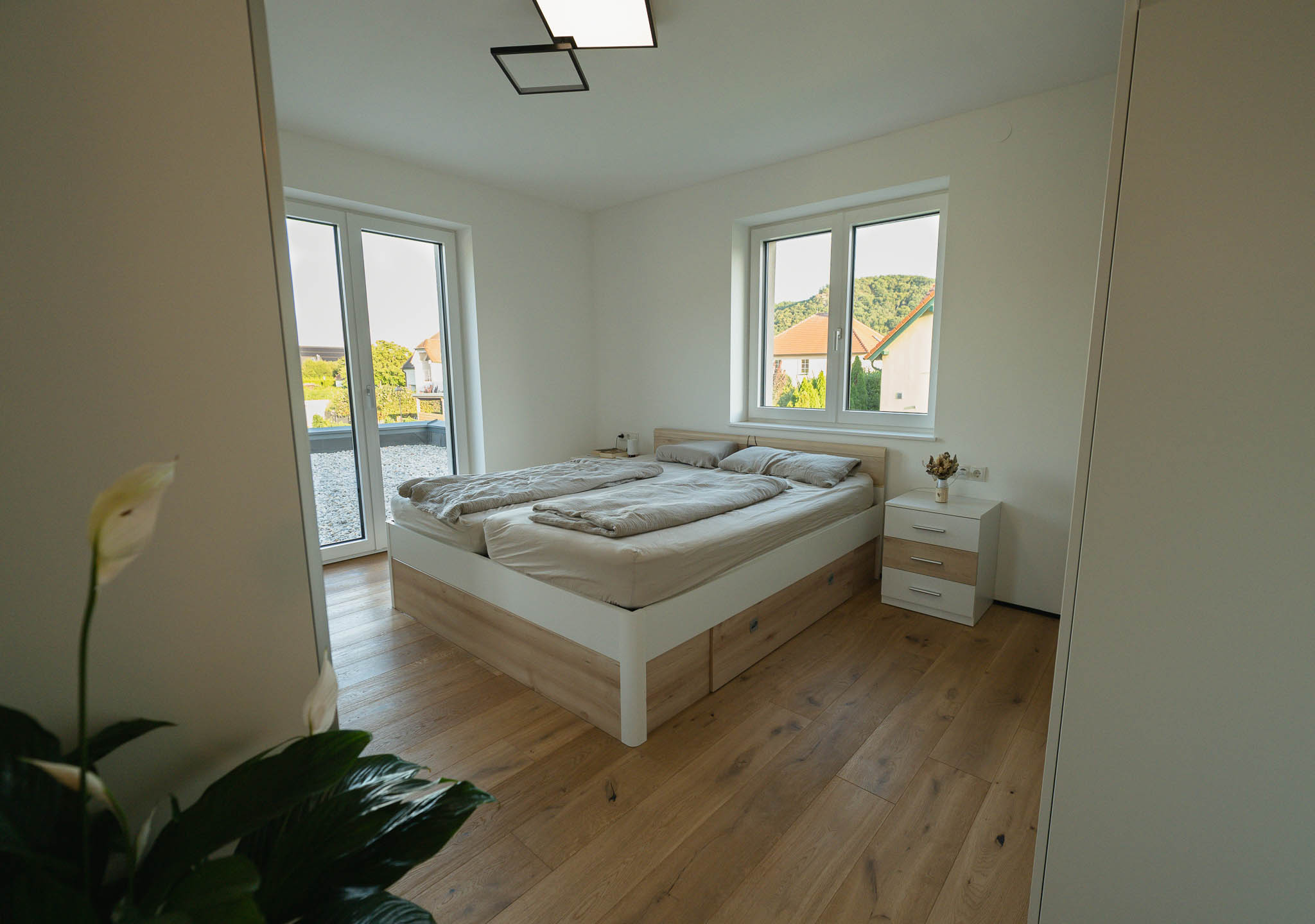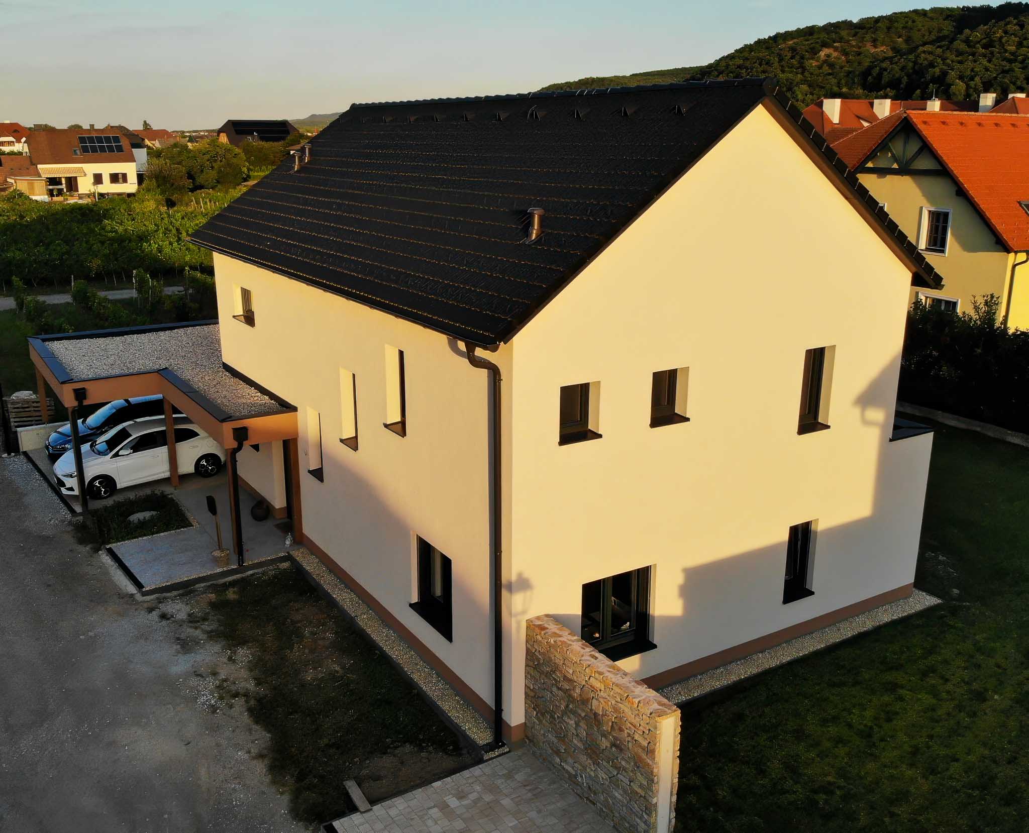 Ein großes Plus war zudem der reibungslose Ablauf: ein Ansprechpartner, der alle Gewerke – vom Elektriker über den Installateur bis zum Fensterbauer – koordinierte, sowie regelmäßige Bemusterungstermine in Zwettl, bei denen Details wie Elektroplan, Fassade, Fliesen und Sanitäreinrichtungen festgelegt wurden.